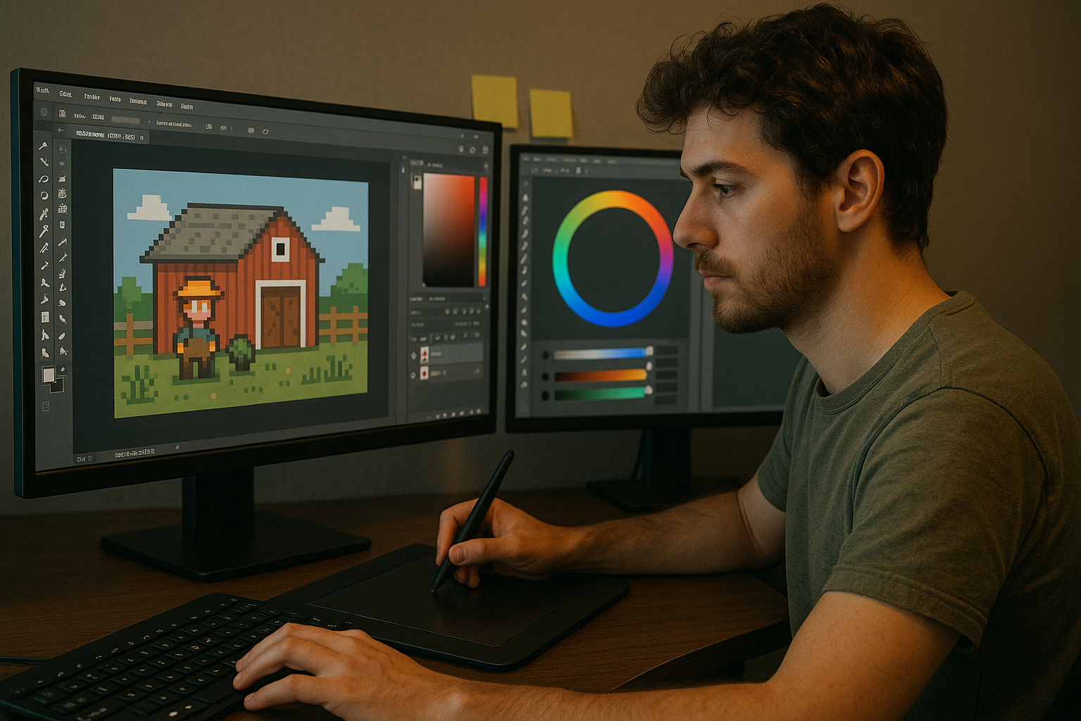 Navrhování, animování a kreslení herních postav, objektů a pozadí pro různé herní scény pixel-art stylu. Kreativita, cit pro barvy a detail jsou zde zásadní.